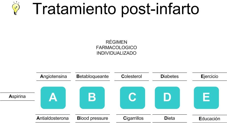 - #086 #twitterapeutica CI: Tto post infarto – Muchos fármacos y recomendaciones - Acuérdate de otra regla --> ABCDE https://pbs.twimg.com/media/BWKDpEwCQAArgBq.jpg:large